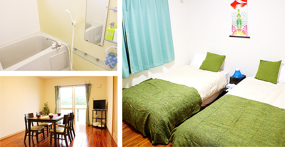 D様房子很乾淨.採光也很棒,附近不能算熱鬧.但超巿和aeon都開車五分鐘左右會抵達~主人也很貼心(廚房備品都有.還有磨好的咖啡粉..非常適合天天都要來一杯黑咖啡的我們);洗衣間裡還有洗衣袋和洗潔精 真的是只要帶著簡單衣物就能好好渡假的一間民宿